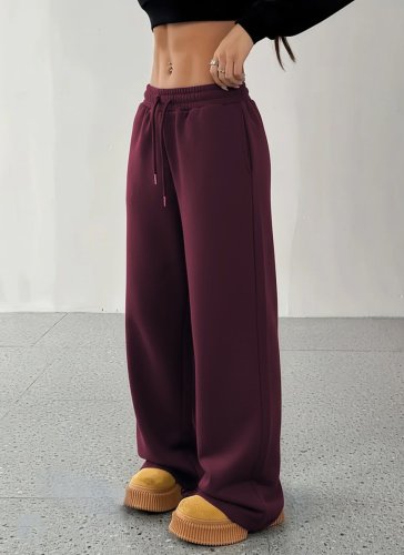 • Kadın yüksek bel lastikli bağcıklı geniş kesim dalgıç mürdüm pantolon