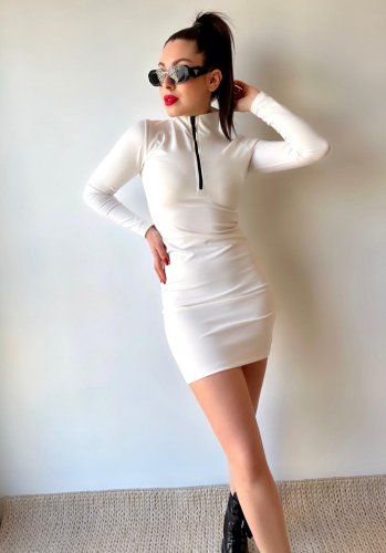 • Kadın balıkçı yaka fermuar detay mini elbise
